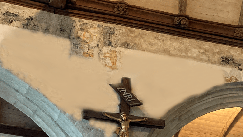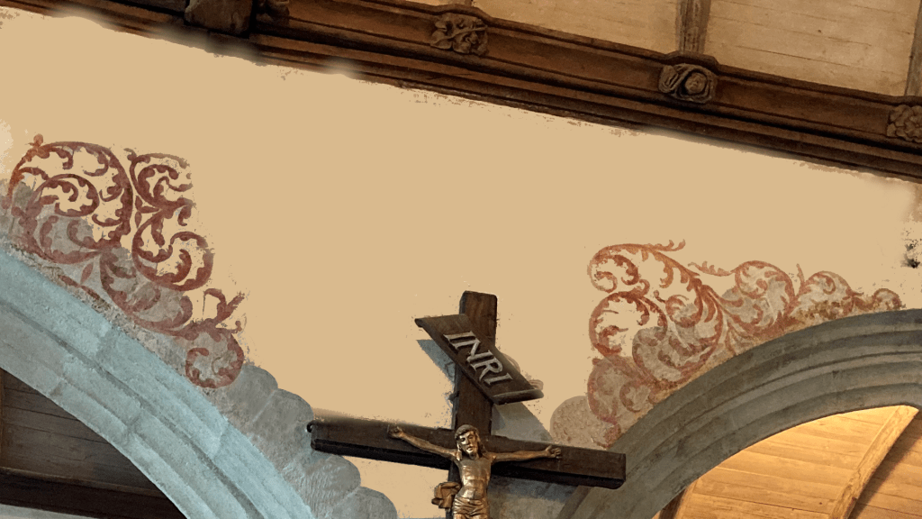 Notez l’évocation de l’arbre de vie par les deux arbres qui s’entrecroisent dans le dos de Jésus.