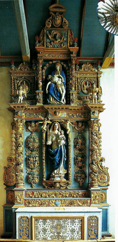 Auf der Chorseite, über der großen Arkade, stellt ein großes Holzgemälde von 1703 die Wiedervereinigung von Jesus und seiner Mutter nach der Folge des Gesprächs mit den Ärzten im Tempel dar.